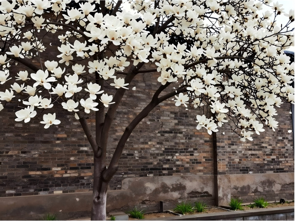 玉兰,木兰科落叶乔木,早春先花后叶。花大色艳,白如凝脂、粉似霞光,香气清幽。花语含高洁、芬芳之意,常植于庭院、公园,是春日里颇具标志性的观赏花卉。